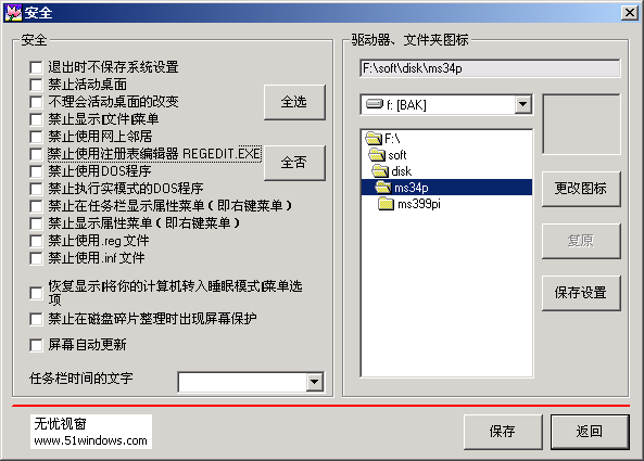 安全:常到网上转的朋友应该都会碰到这个问题吧:就是一些系统功能被禁用,如不用运行regedit..就把前面的对钩去掉,点个保存设置就行了!注销一次就会恢复!